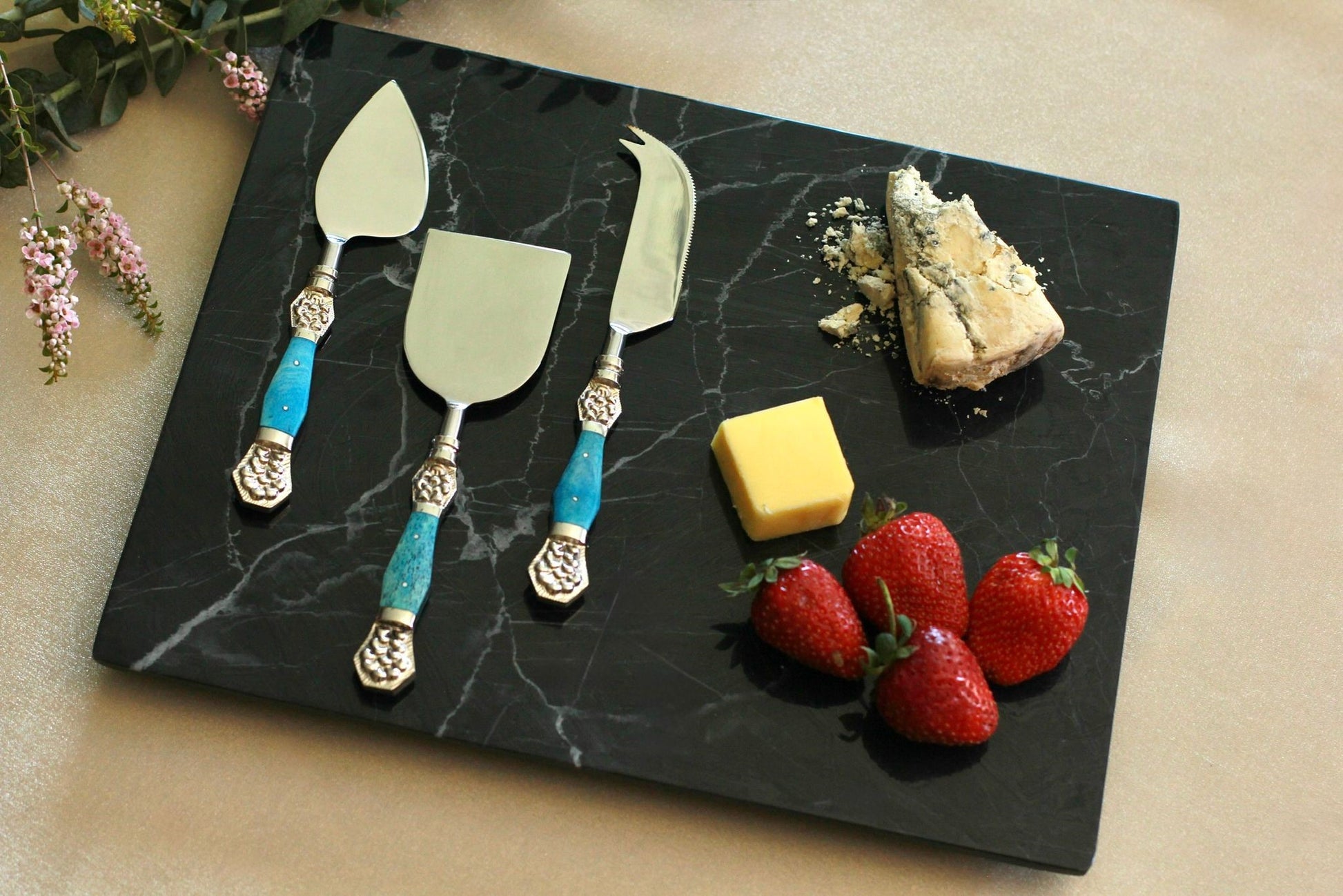 This set is not only designed for practicality in serving a variety of cheeses but also serves as a statement piece for any dining or entertaining occasion. The exquisite designs and the luxurious feel of the make this set a perfect addition to elegant gatherings, adding a touch of refinement to your table setting.